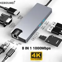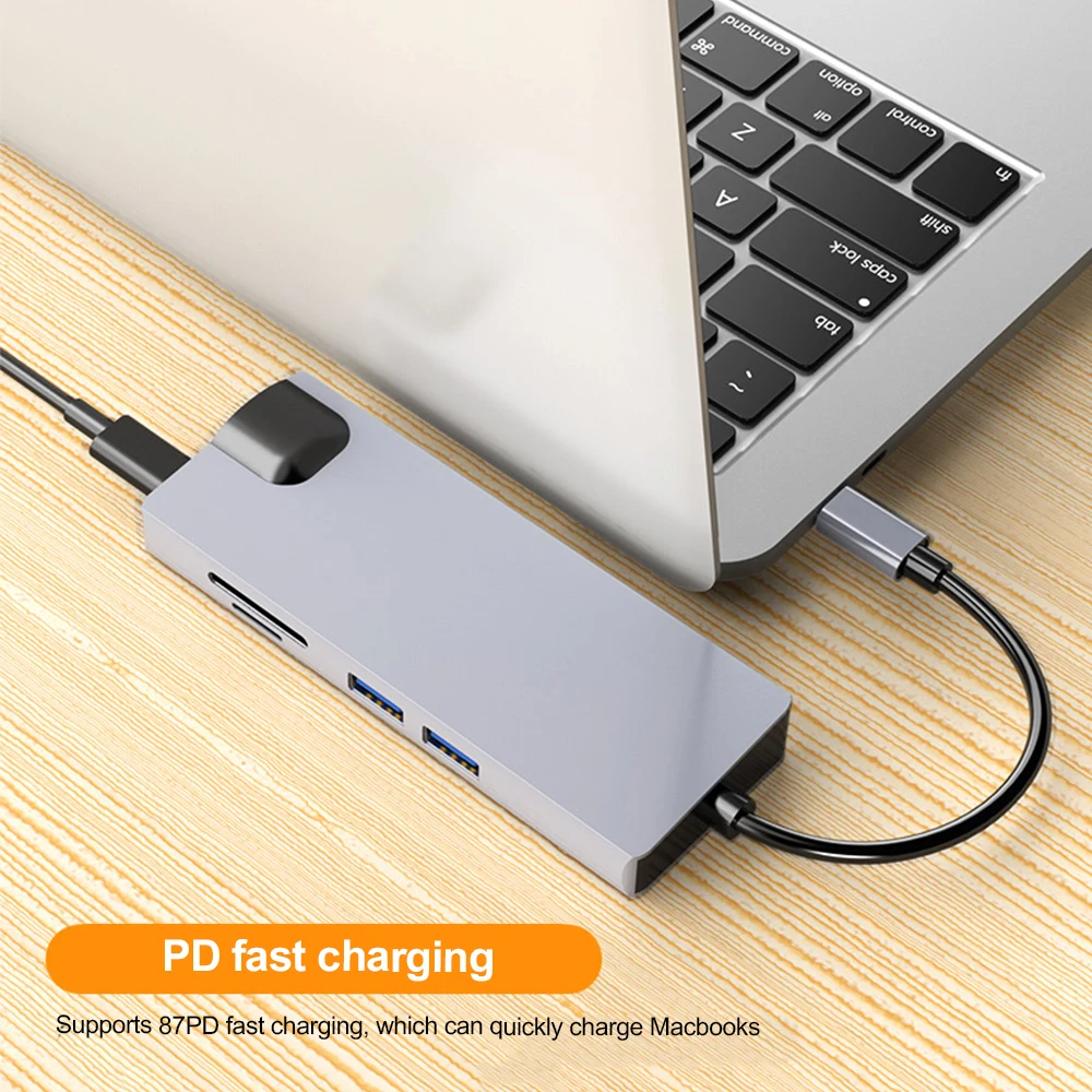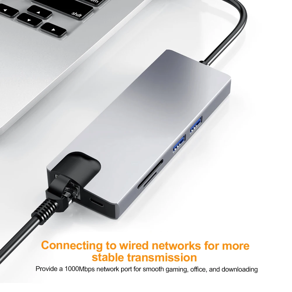 (6) 8 em 1 1000M: HD 4K@30HZ*1+VGA*1+1000M RJ45*1+PD 87W*1+SD*1+TF*1+USB 3.0*2