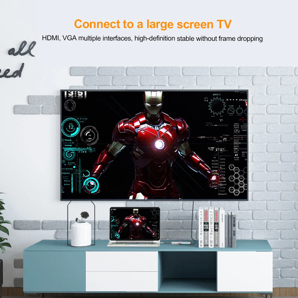 Interfaces múltiplas HDMI e VGA, alta definição estável sem perda de quadros.